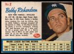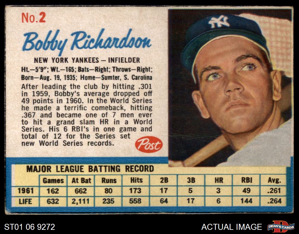 1962 Post Cereal #2 Bobby Richardson 2 - GOOD