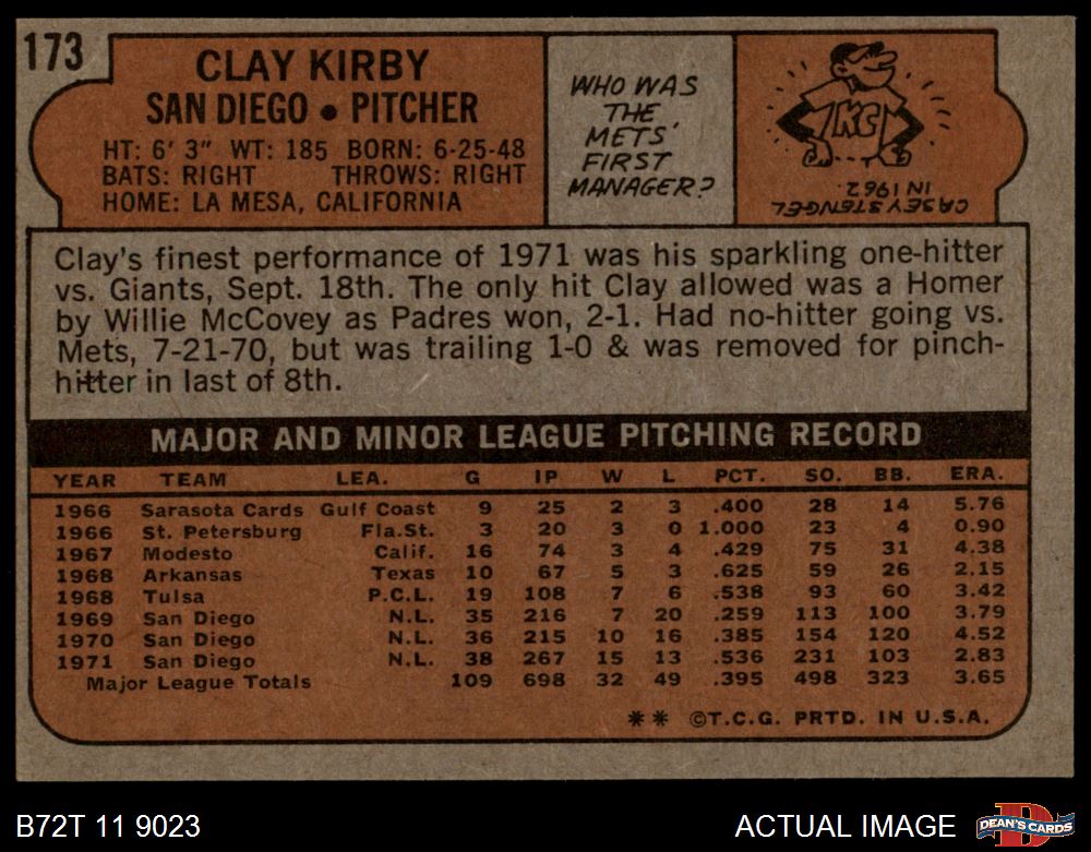1972 Topps #173 Clay Kirby 5 - EX