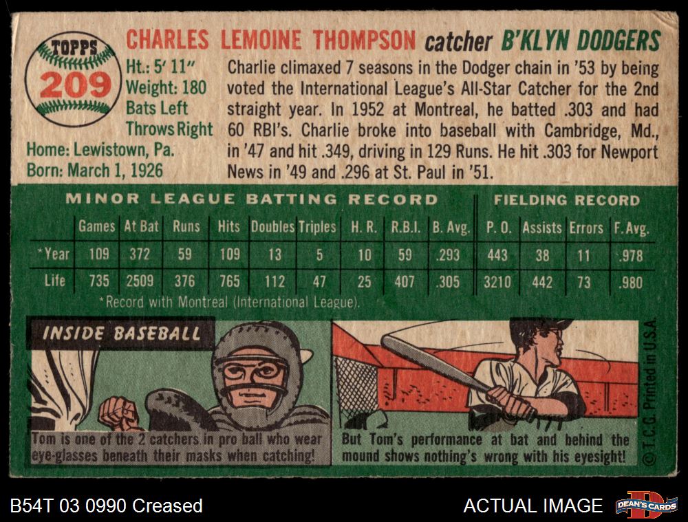 1954 Topps #209 Charlie Thompson Front Thumbnail