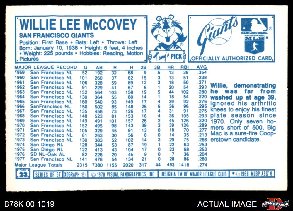 1978 Kellogg's #23 Willie McCovey 8 - NM/MT