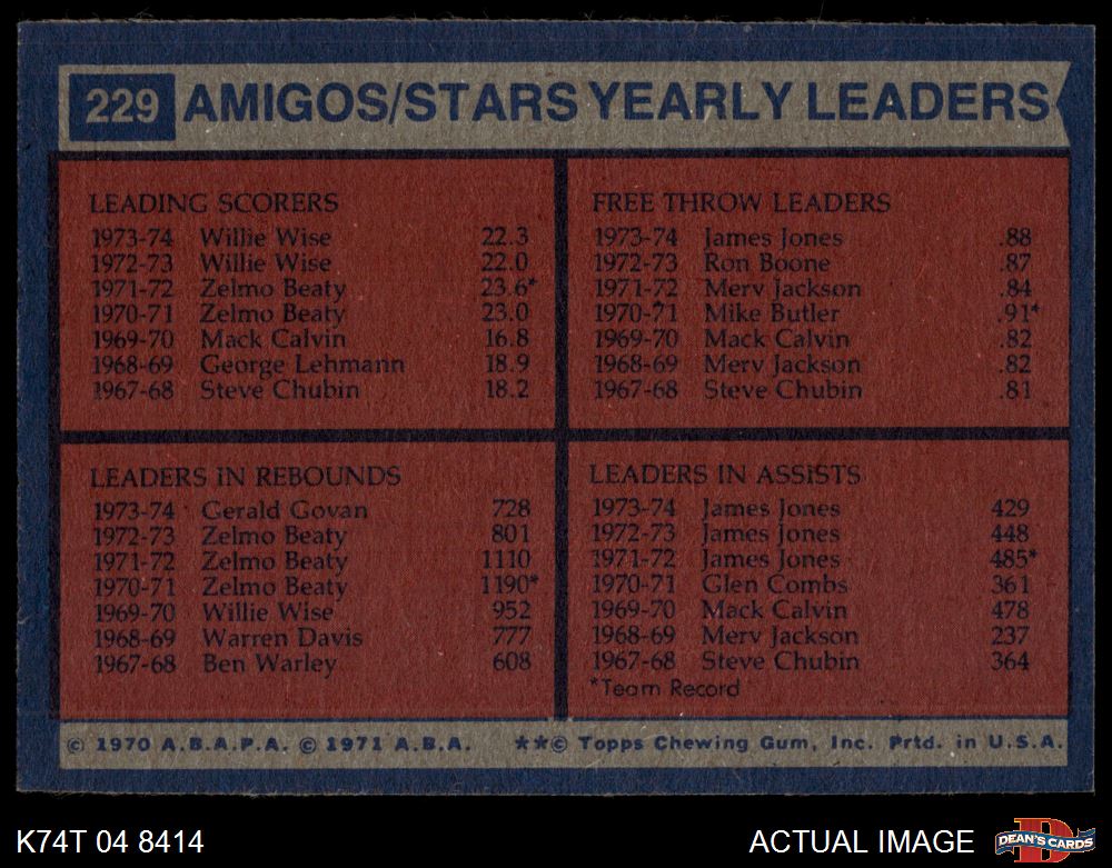 1974 Topps #229 - Gerald Govan / James Jones / Willie Wise Stars Leaders 6 - EX/MT