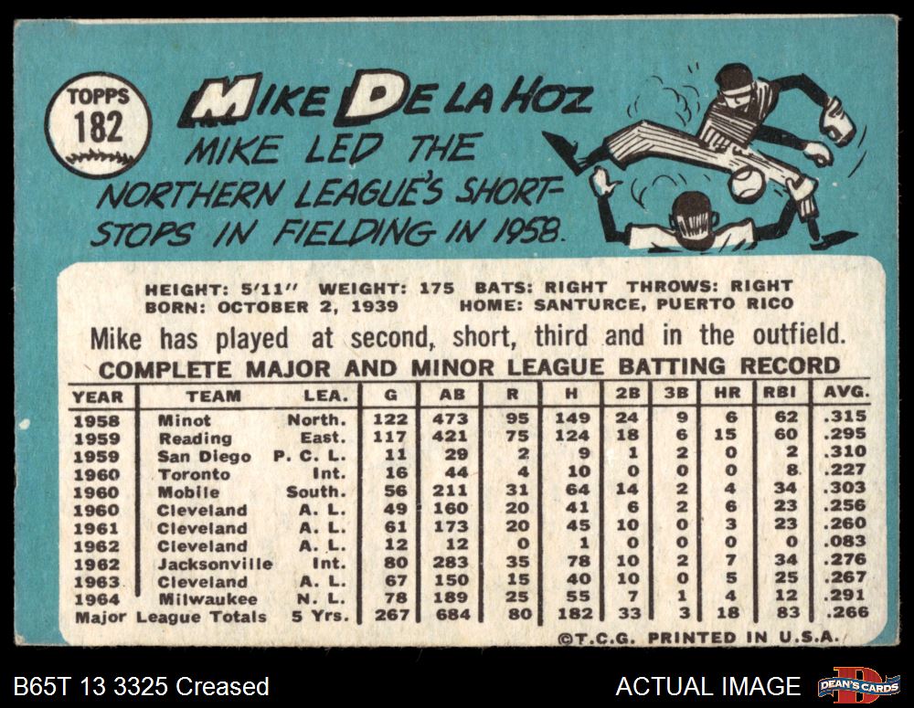 1965 Topps #182 Mike de la Hoz 3 - VG