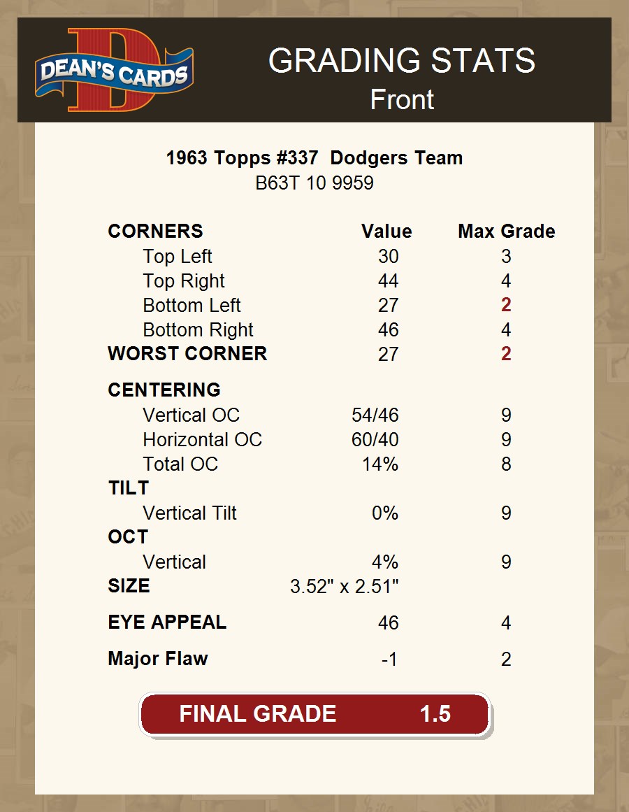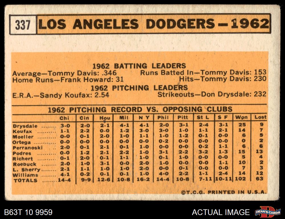 1963 Topps #337 Dodgers Team 1.5 - FAIR