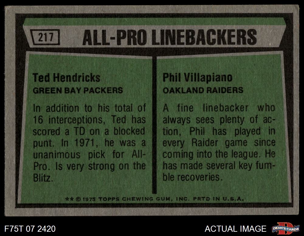 1975 Topps #217 All-Pro Linebackers