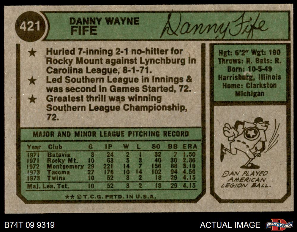 1974 Topps #421 Dan Fife 6 - EX/MT