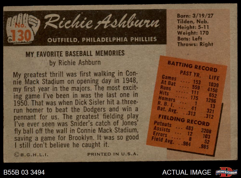 1955 Bowman #130 Richie Ashburn 4 - VG/EX
