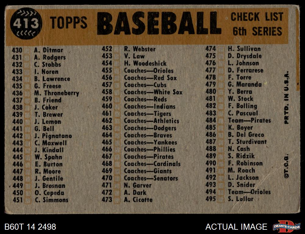 1960 Topps #413 Athletics Team Checklist 1 - POOR