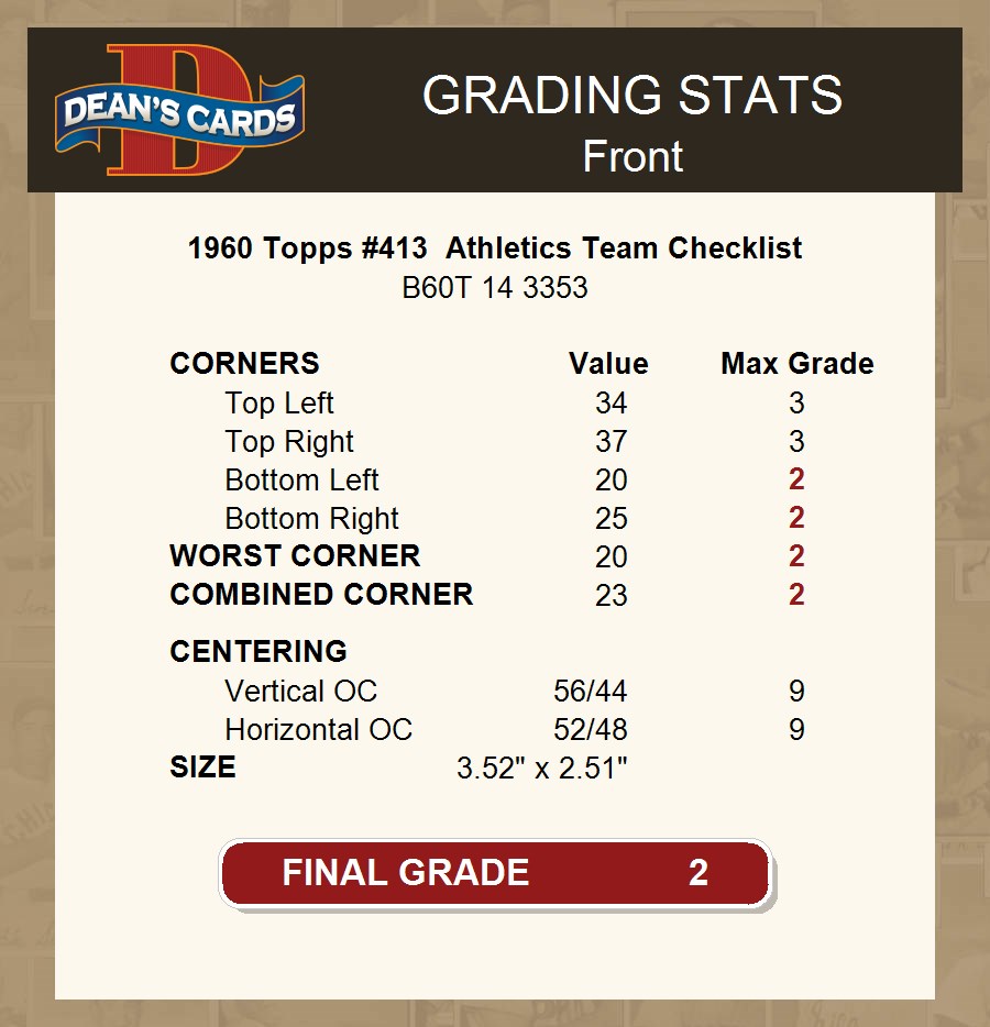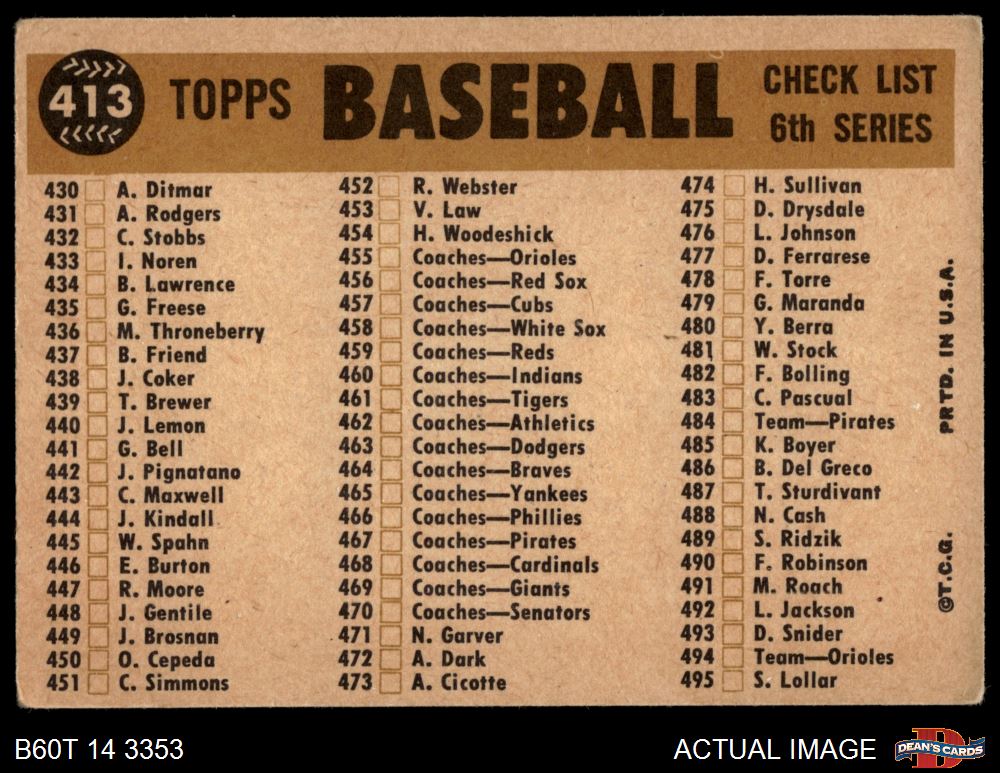 1960 Topps #413 Athletics Team Checklist 2 - GOOD