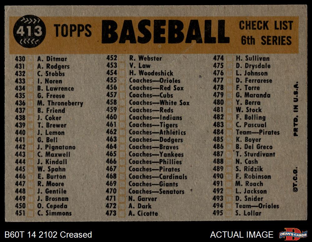 1960 Topps #413  Athletics Team Checklist Front Thumbnail