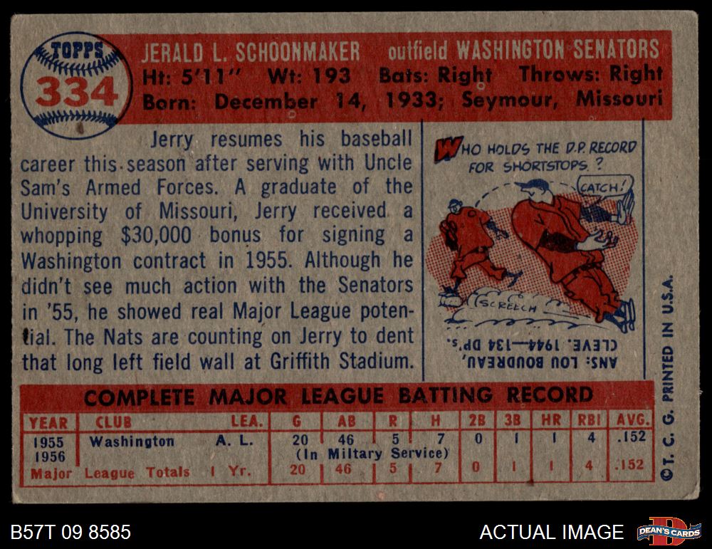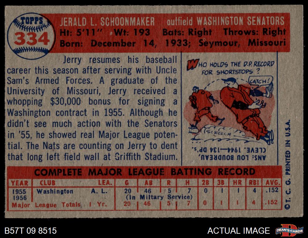 1957 Topps #334 Jerry Schoonmaker
