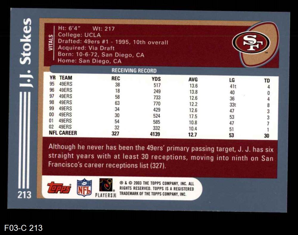 2003 Topps #213 J.J. Stokes 8 - NM/MT