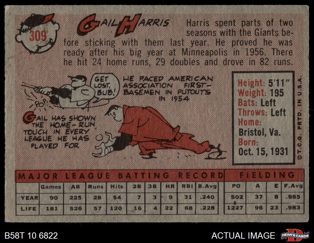 1958 Topps #309 Gail Harris 4 - VG/EX