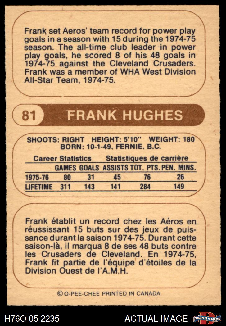 1976 O-Pee-Chee WHA #81 Frank Hughes 7 - NM