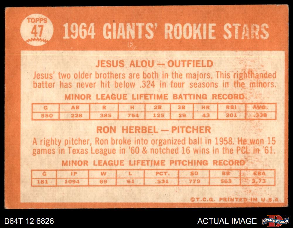 1964 Topps #47 - Jesus Alou / Ron Herbel Giants Rookies 2 - GOOD
