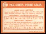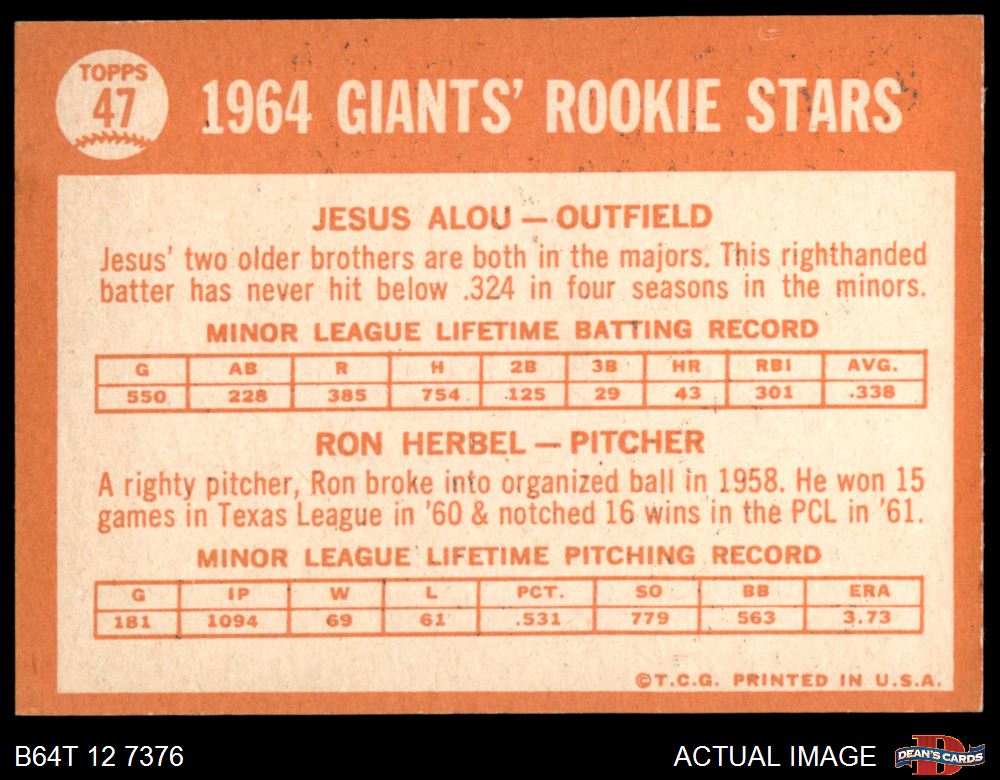 1964 Topps #47 - Jesus Alou / Ron Herbel Giants Rookies 3 - VG