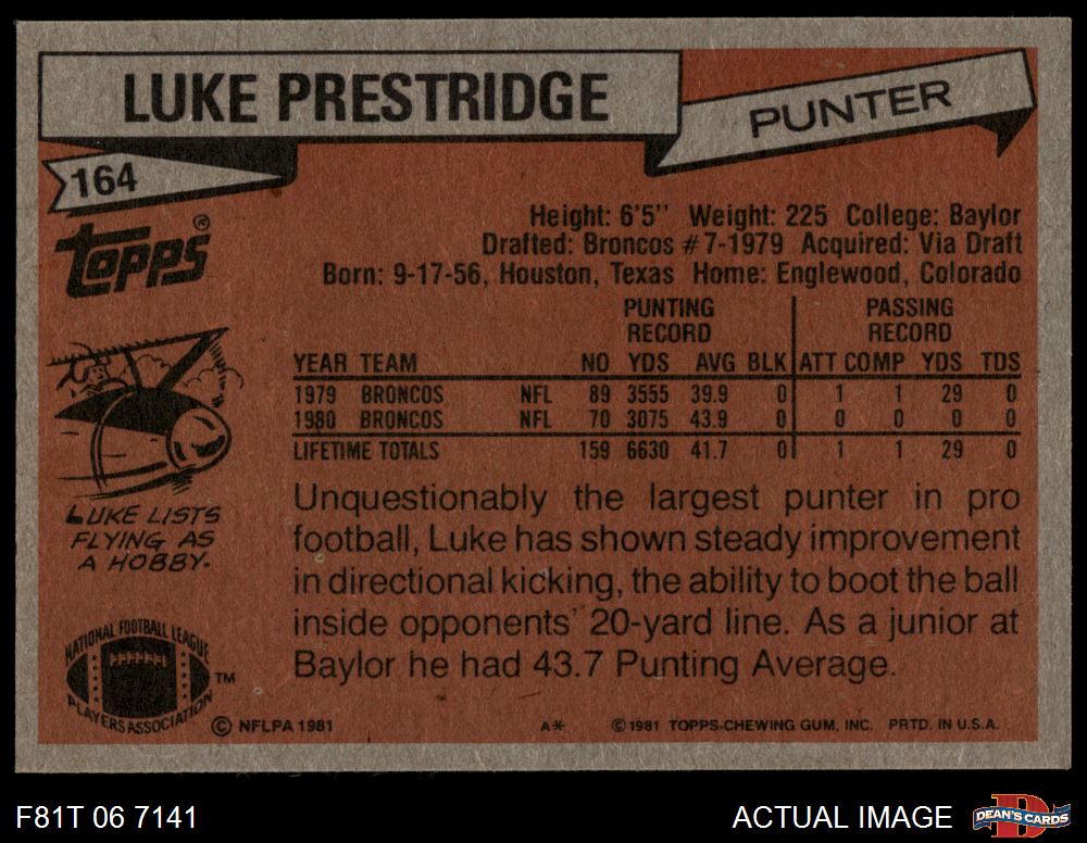 1981 Topps #164 Luke Prestridge 8 - NM/MT