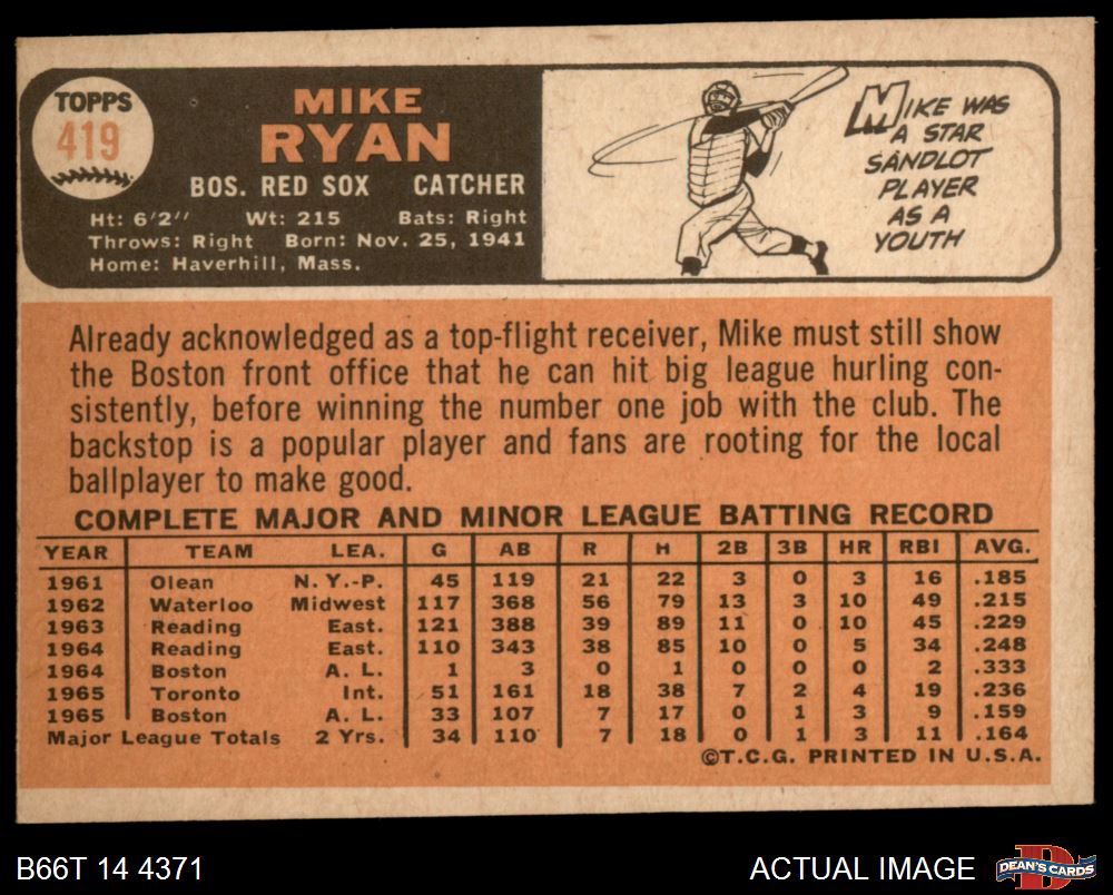 1966 Topps #419 Mike Ryan 4 - VG/EX