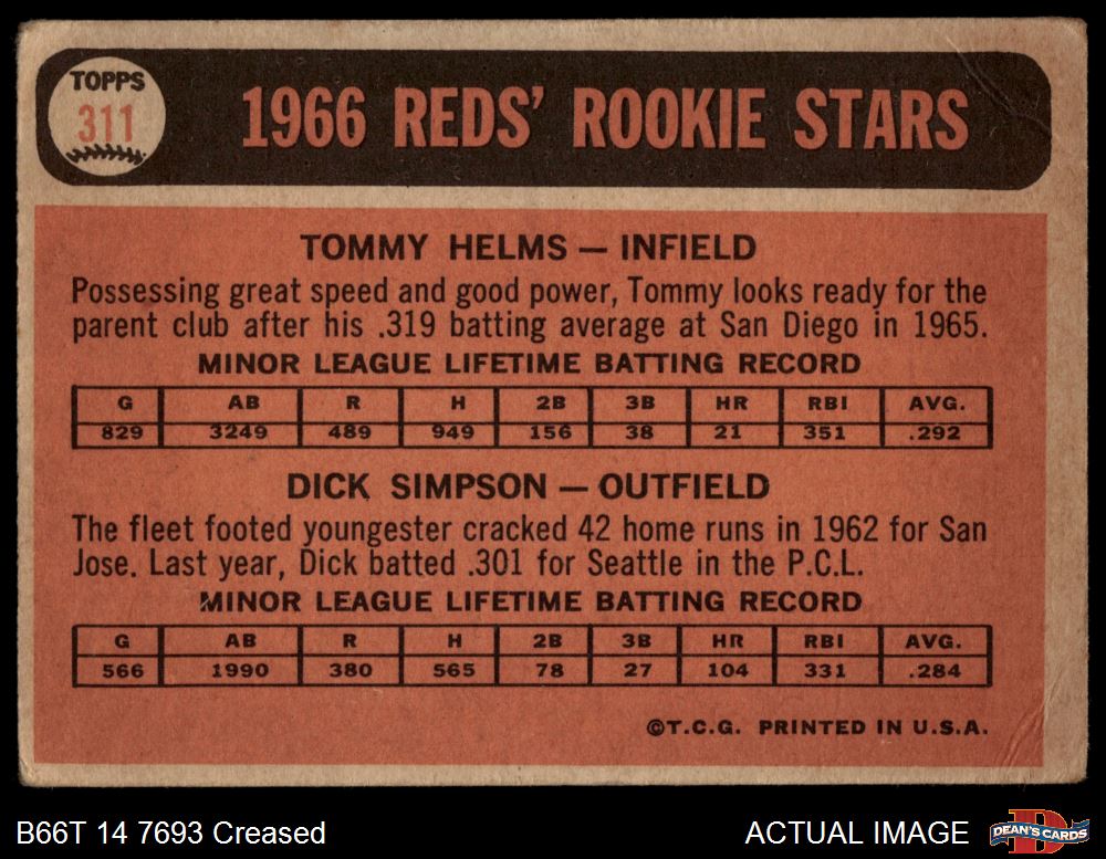 1966 Topps #311  -  Tommy Helms / Dick Simpson Reds Rookies Front Thumbnail