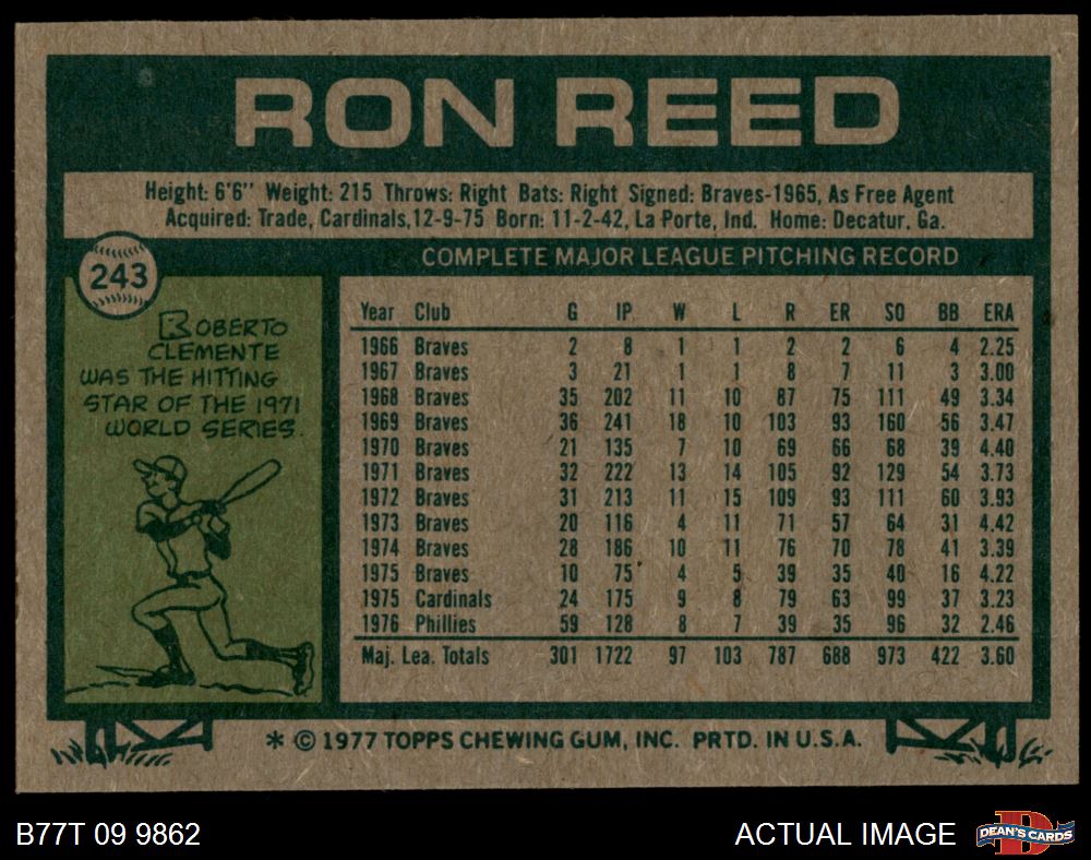 1977 Topps #243 Ron Reed
