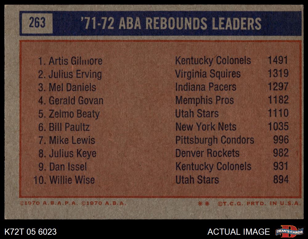 1972 Topps #263 - Mel Daniels / Julius Erving / Artis Gilmore ABA Rebound Leaders 5 - EX
