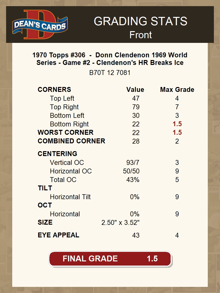 1970 Topps #306 - Donn Clendenon 1969 World Series - Game #2 - Clendenon's HR Breaks Ice 1.5 - FAIR