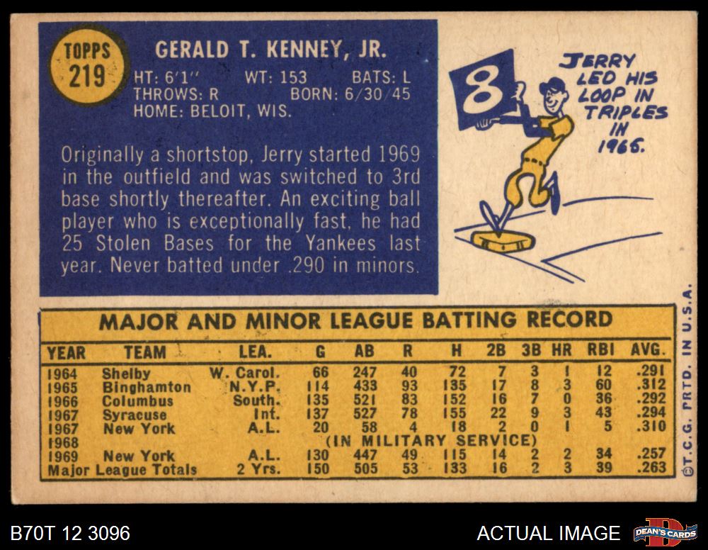 1970 Topps #219 Jerry Kenney 5 - EX