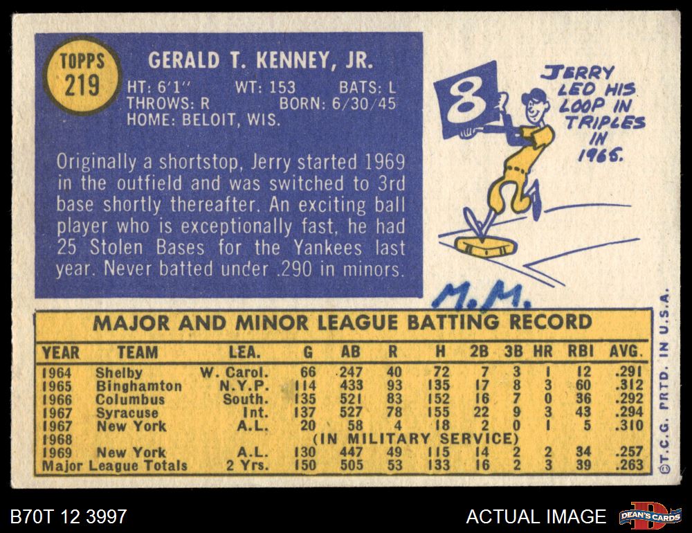 1970 Topps #219 Jerry Kenney 6 - EX/MT