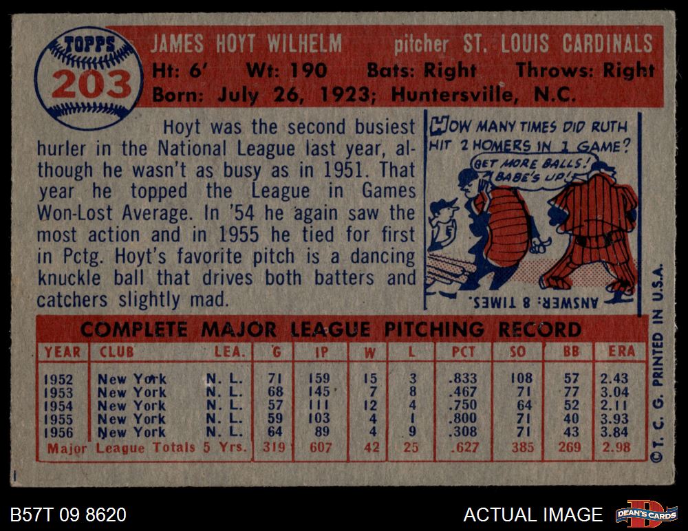 1957 Topps #203 Hoyt Wilhelm 4 - VG/EX