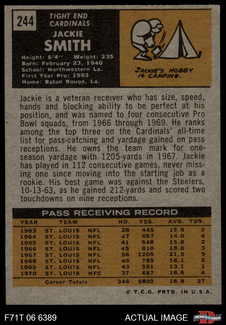 1971 Topps #244 Jackie Smith 3 - VG