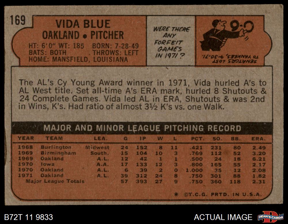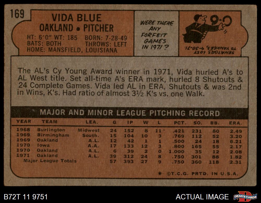 1972 Topps #169 Vida Blue 2 - GOOD