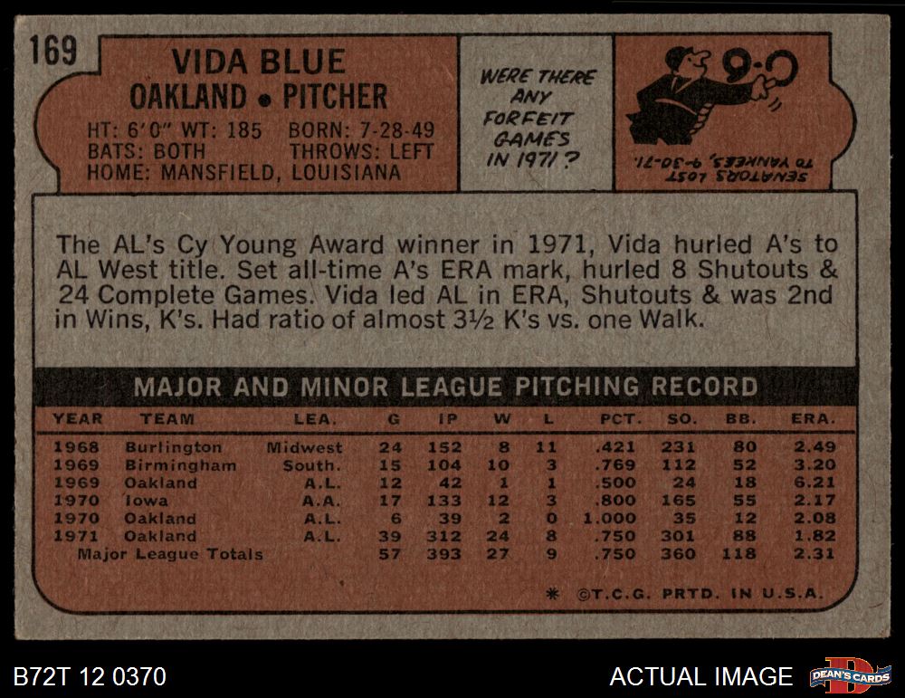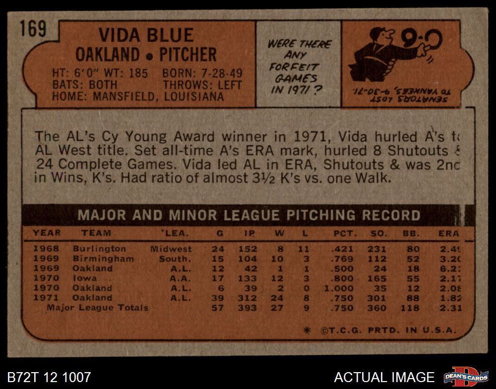 1972 Topps #169 Vida Blue 4 - VG/EX