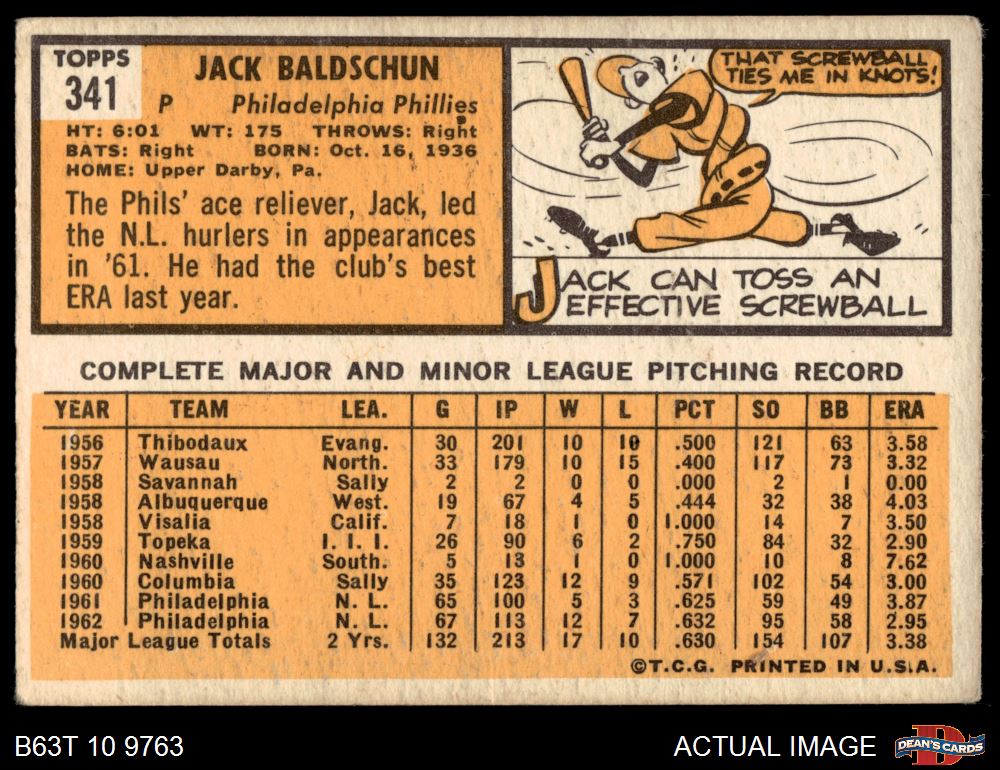 1963 Topps #341 DOT Jack Baldschun