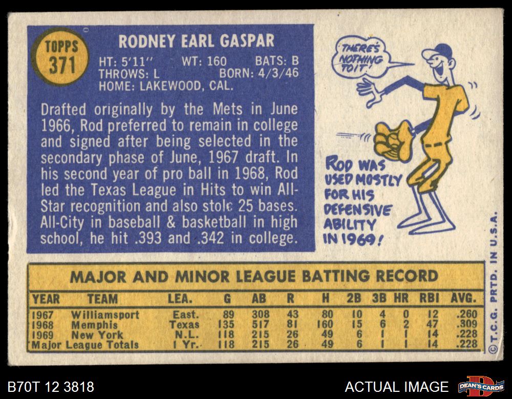 1970 Topps #371 Rod Gaspar 3 - VG