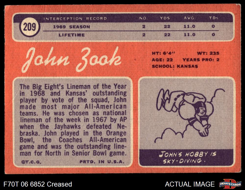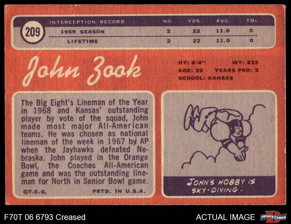 1970 Topps #209 John Zook Front Thumbnail