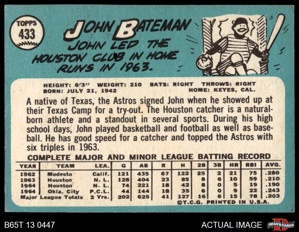 1965 Topps #433 John Bateman 3 - VG
