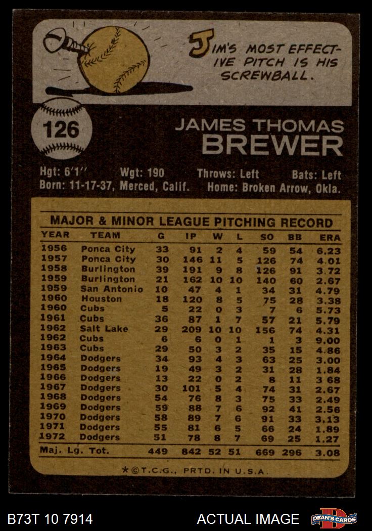 1973 Topps #126 Jim Brewer 3 - VG
