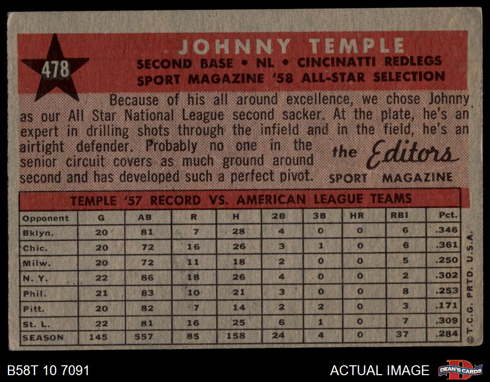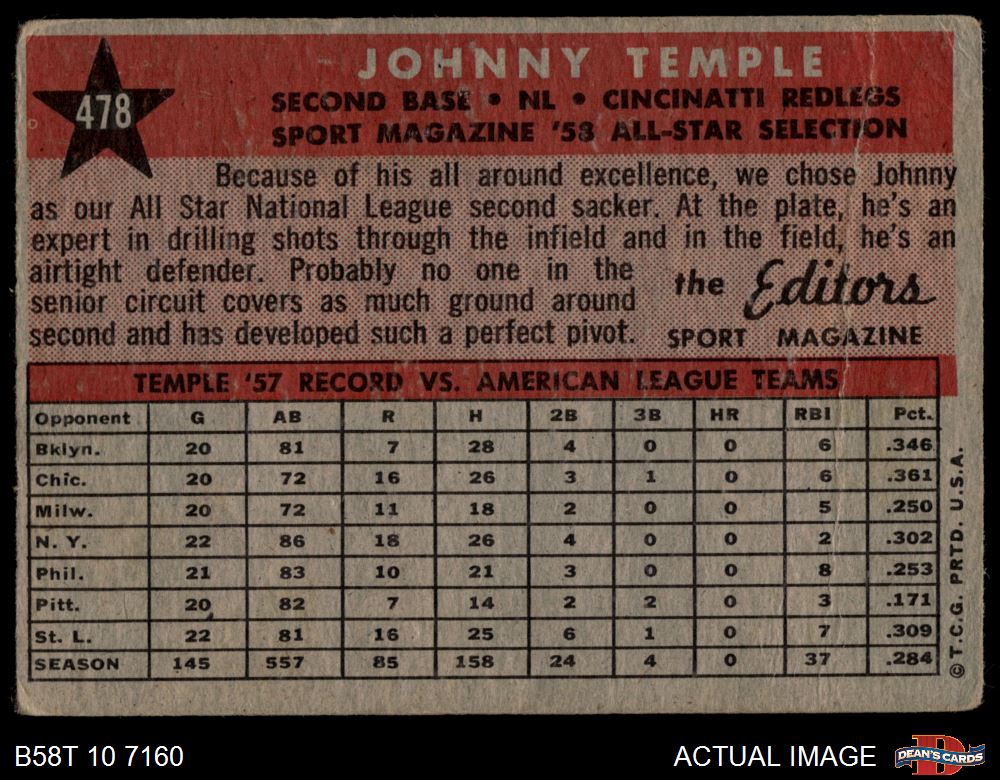 1958 Topps #478 - Johnny Temple All-Star 1.5 - FAIR
