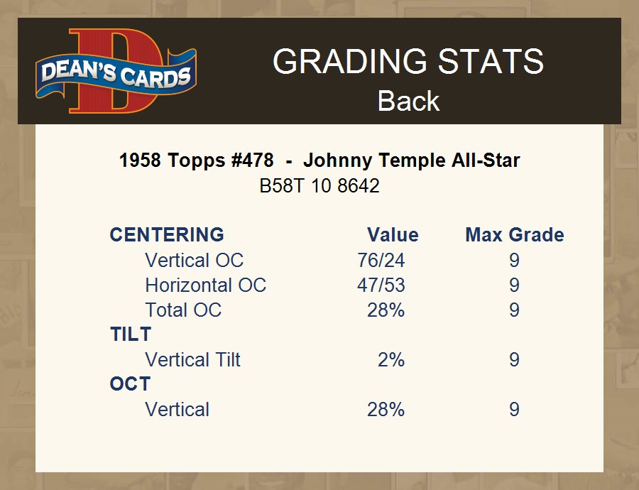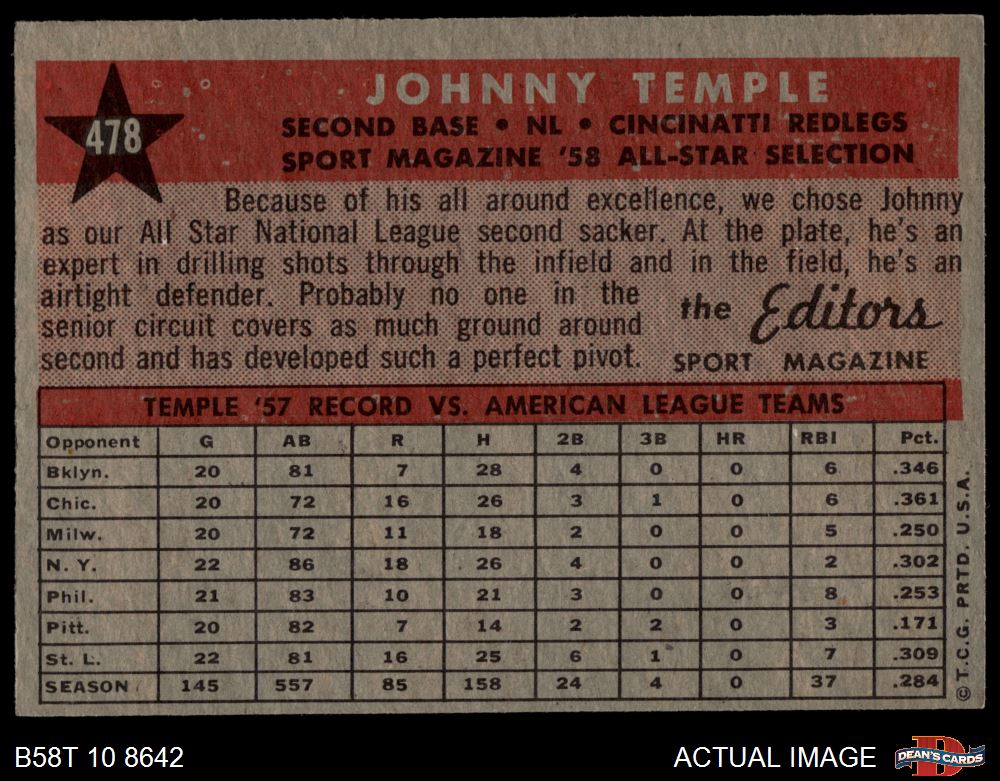 1958 Topps #478 - Johnny Temple All-Star 5 - EX