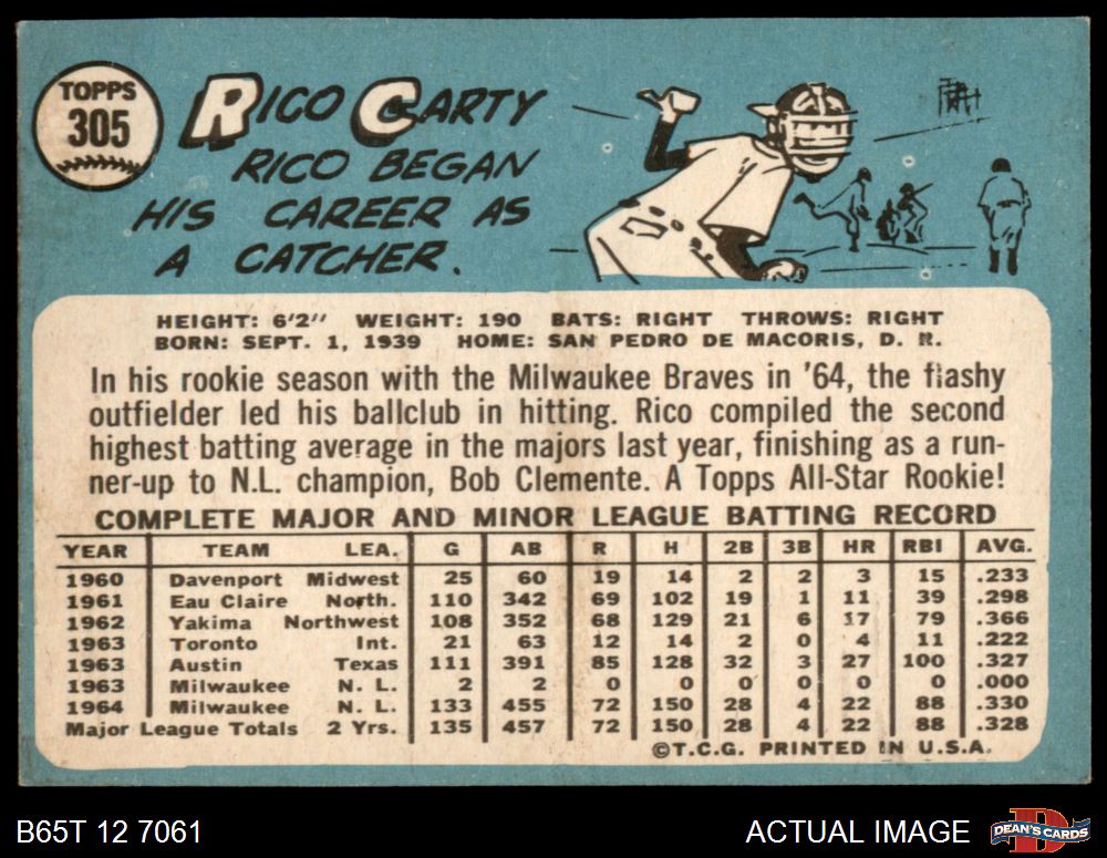 1965 Topps #305 Rico Carty 5 - EX