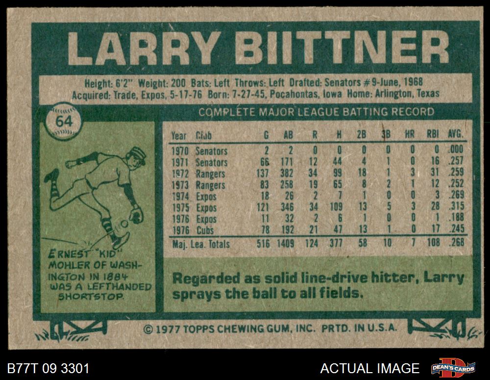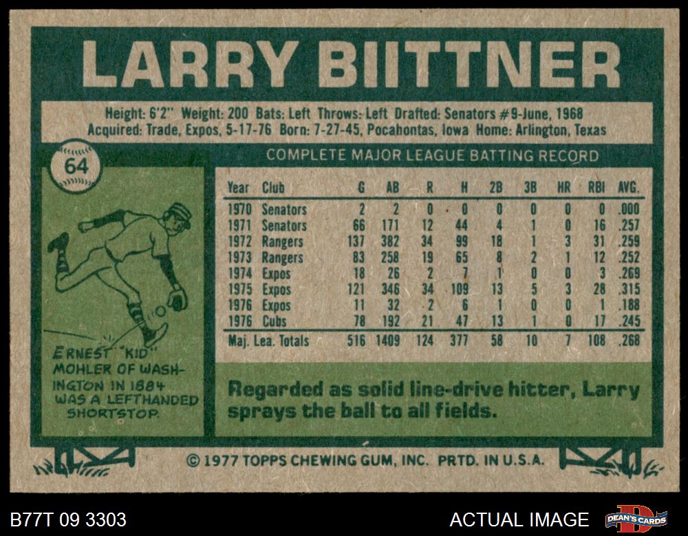 1977 Topps #64 Larry Biittner 4 - VG/EX
