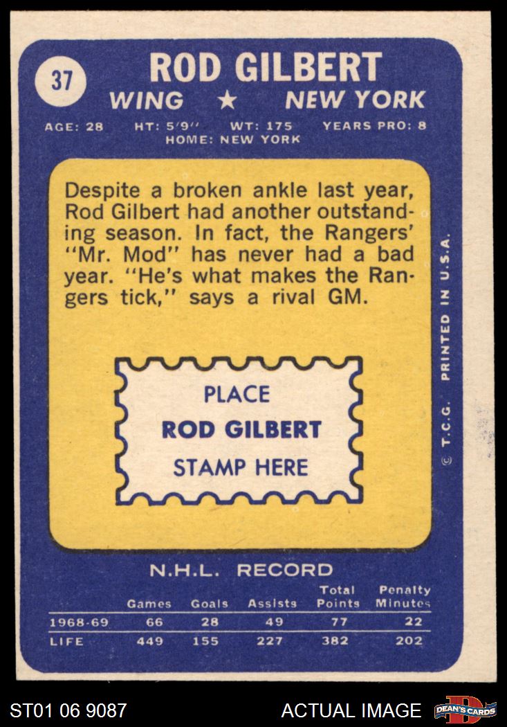 1969 Topps #37 Rod Gilbert 6 - EX/MT