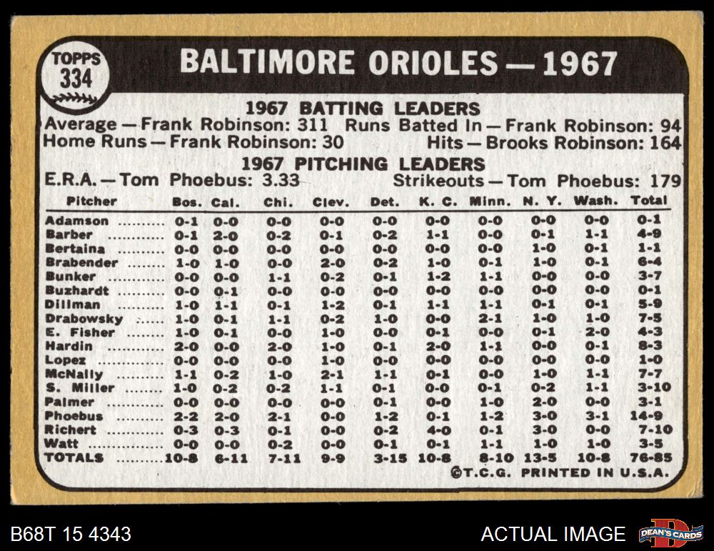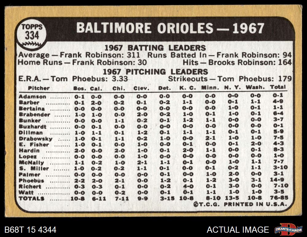 1968 Topps #334 Orioles Team