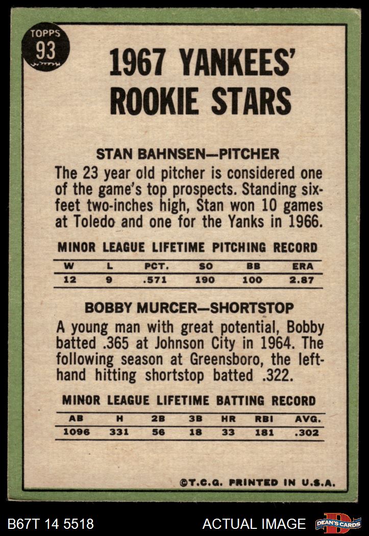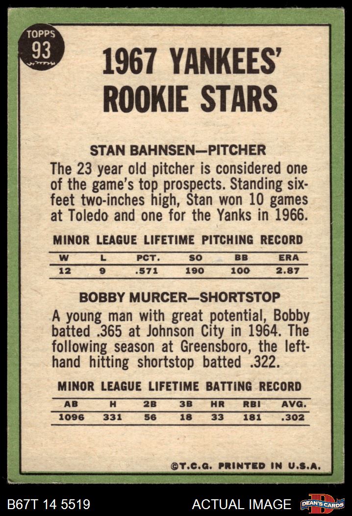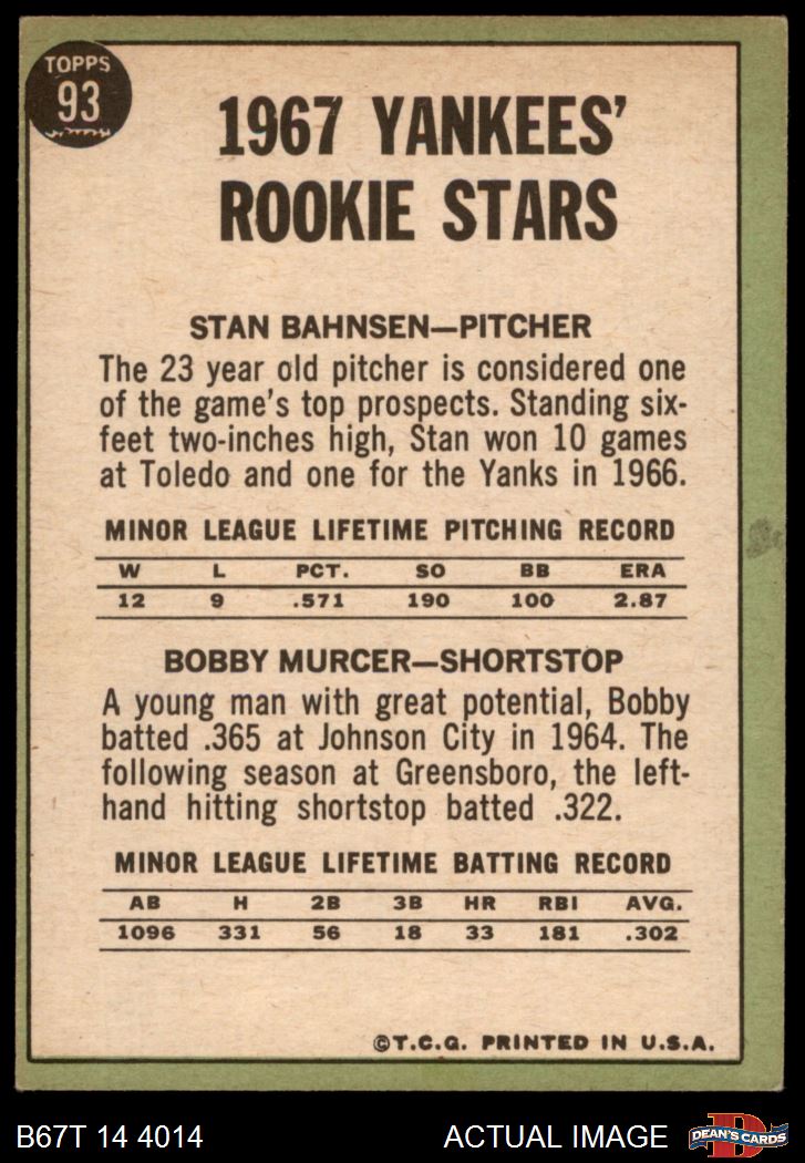1967 Topps #93 - Bobby Murcer / Stan Bahnsen Yankees Rookies 4 - VG/EX