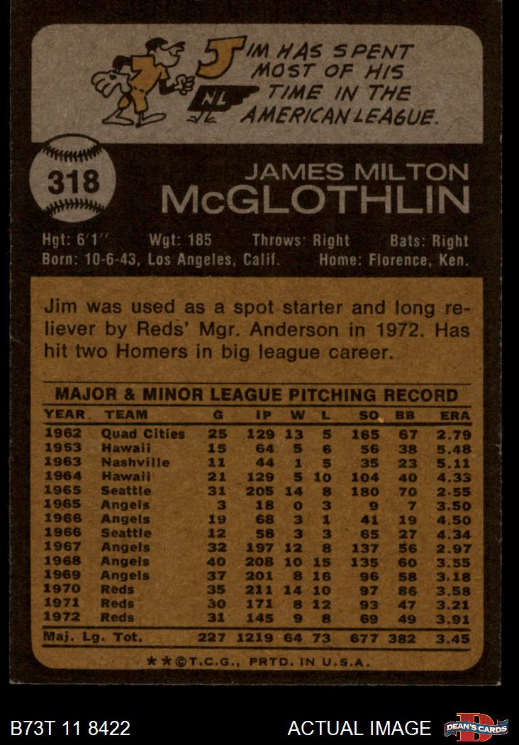 1973 Topps #318 Jim McGlothlin 6 - EX/MT