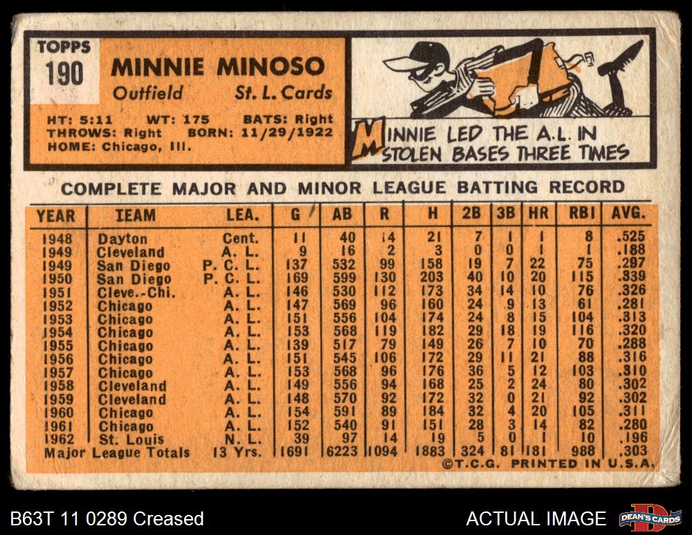 1963 Topps #190 Minnie Minoso 1 - POOR