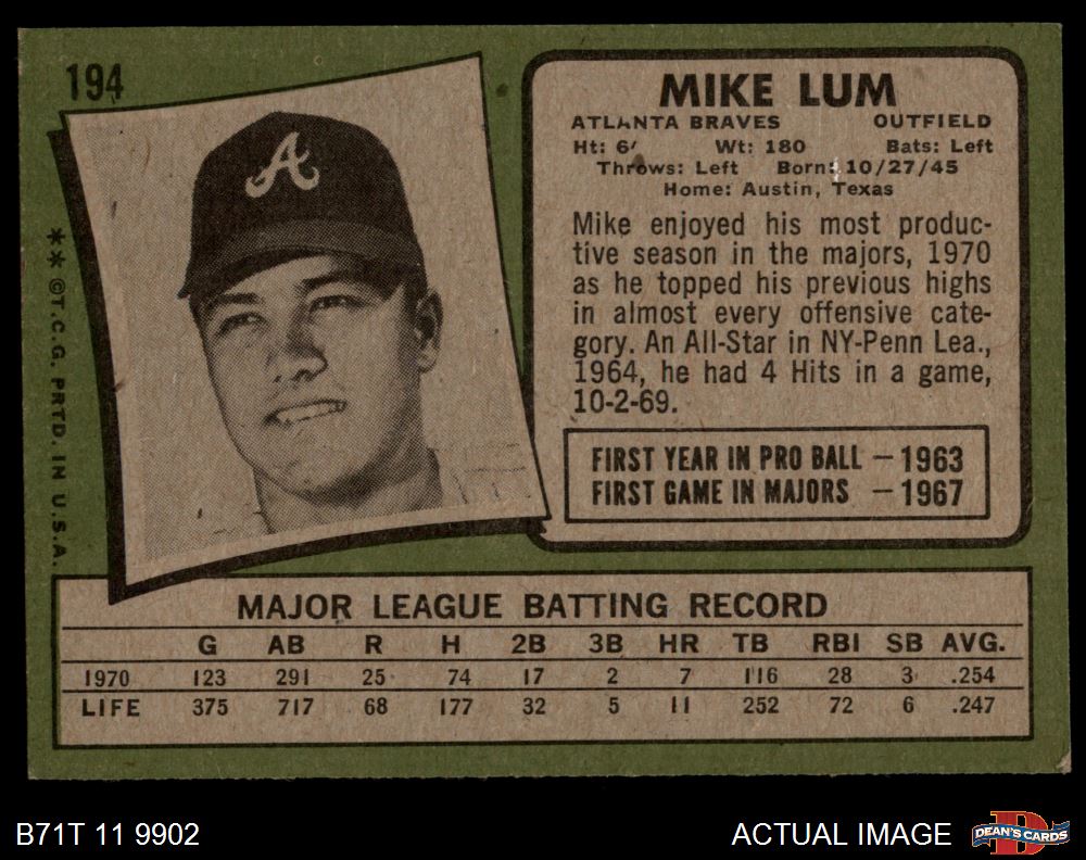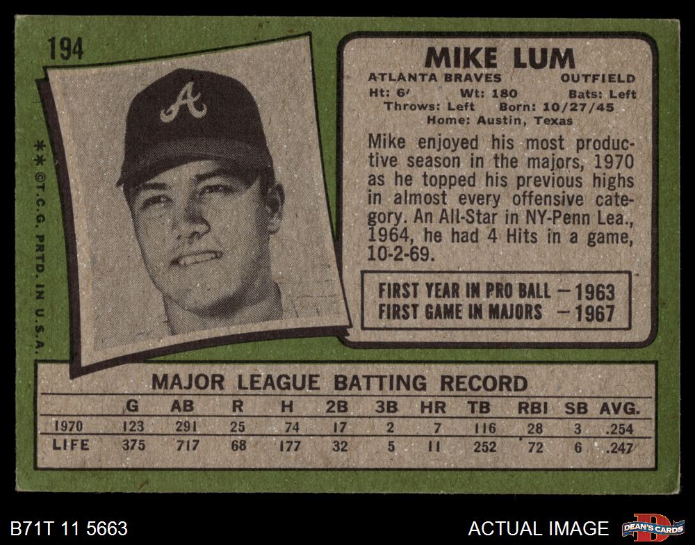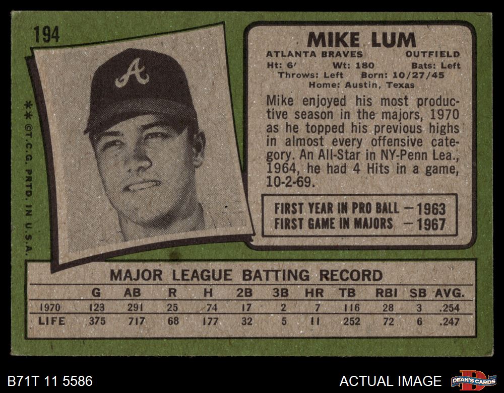 1971 Topps Baseball Cards (10,547 available)1971 Topps Braves (606 available)