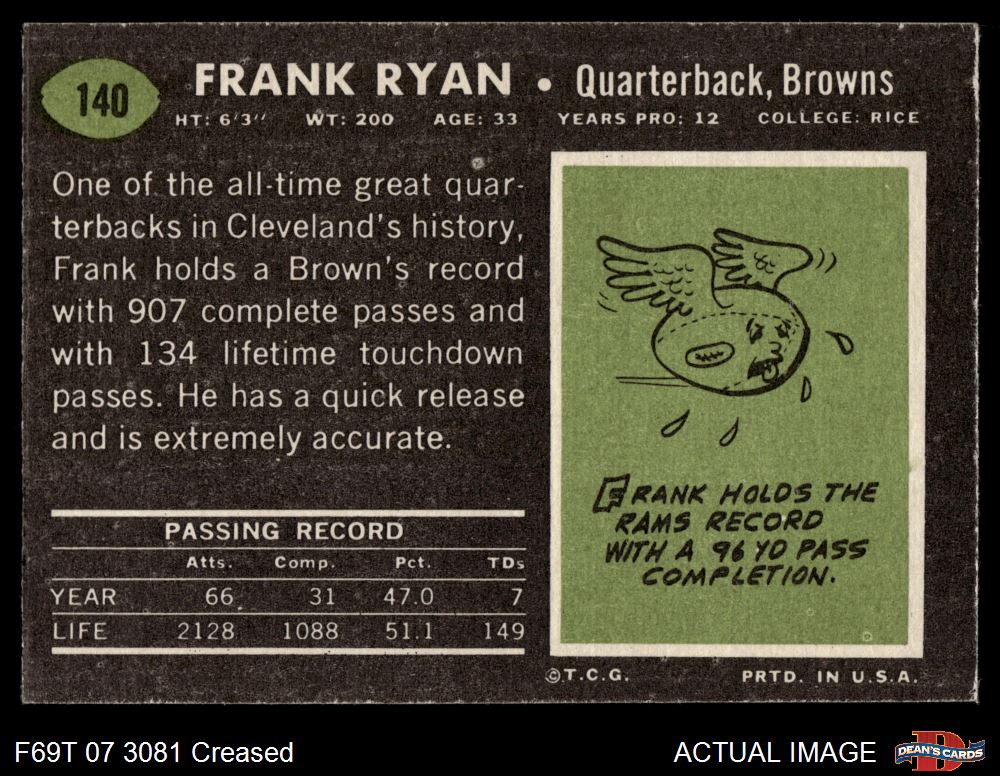 1969 Topps #140 Frank Ryan Front Thumbnail