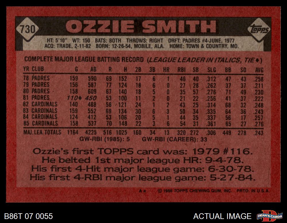 1986 Topps #730 Ozzie Smith 8 - NM/MT