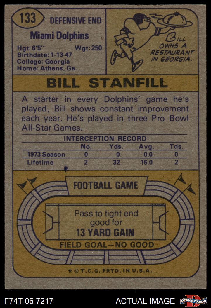 1974 Topps #133 - Bill Stanfill All-Pro 4 - VG/EX