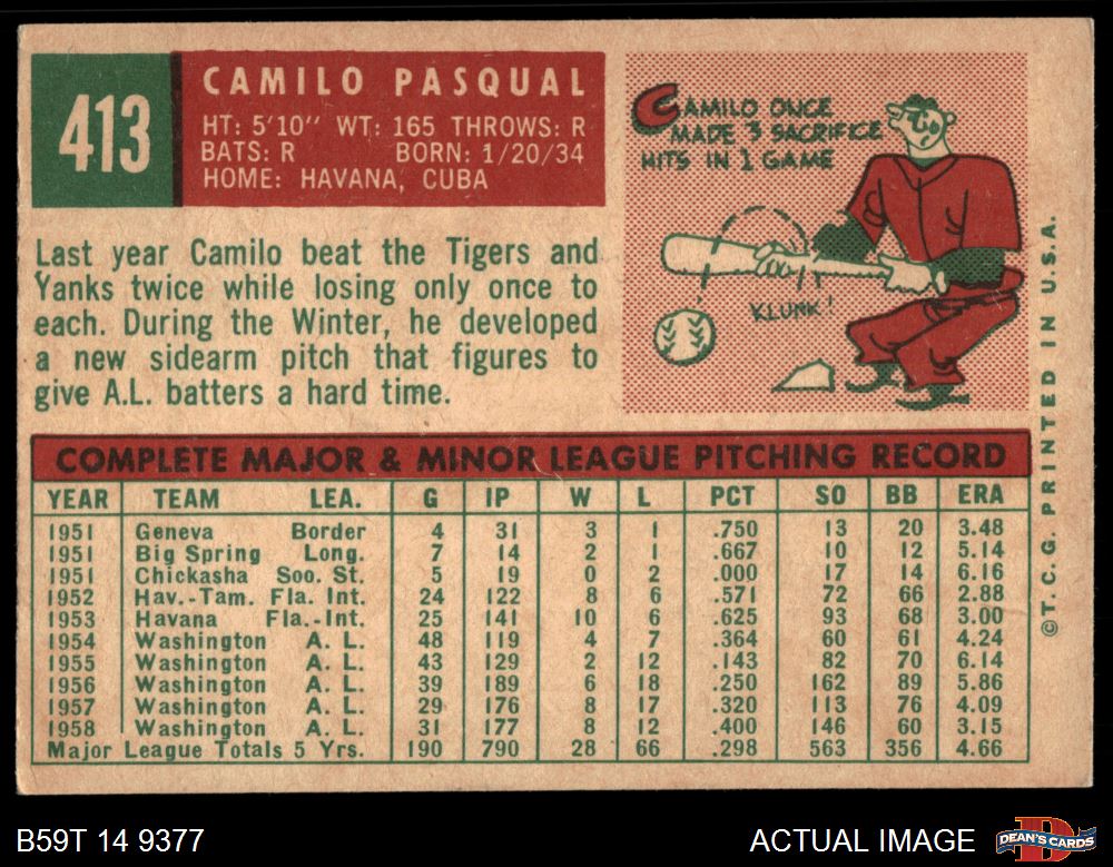 1959 Topps #413 Camilo Pascual 5 - EX